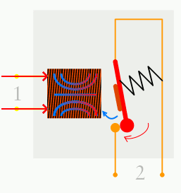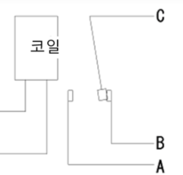 릴레이 (RELAY) 의 접점의 전류가 흐를때만 동작을 하며 전류가 차단될시 스프링의 힘에 의하여 초기 상태로 복귀한다.